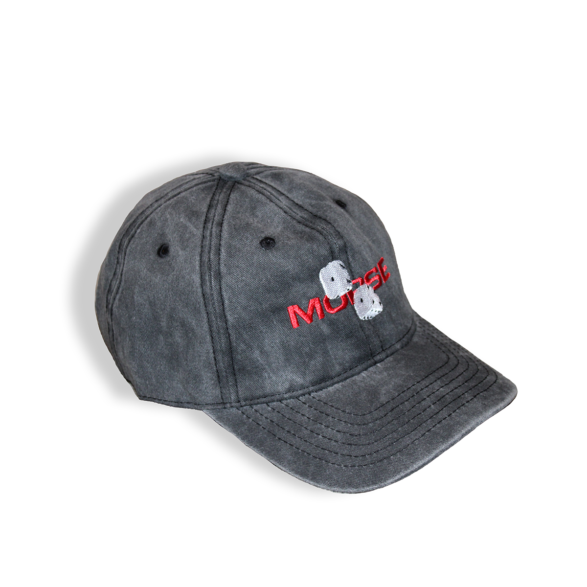 Faded Black 6 Panel Cap With Embroidered Graphic Logo